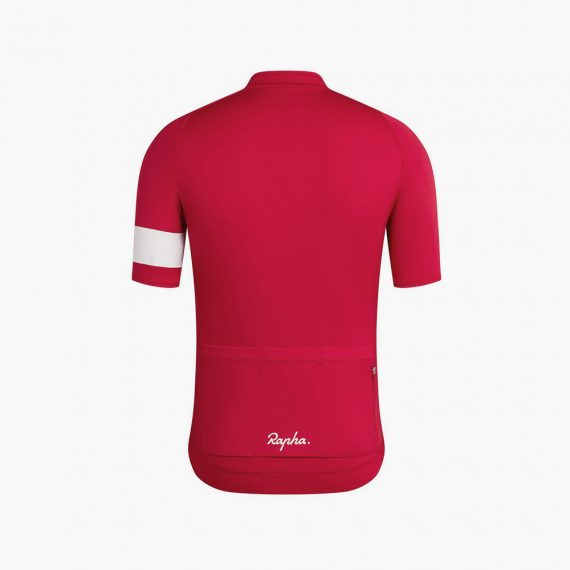 Le Rapha Maillot Core Jersey Red est le maillot emblématique qui a établi le nouveau standard des jersey. Il a été revisité pour cette nouvelle version et les designers de Rapha ont fait en sorte de l’améliorer en utilisant une matière plus extensible qui rapprochera ce jersey du corps sans limiter les mouvements. Le tissu choisi est doux et très respirant, vous pourrez donc le porter à même la peau ou au dessus d’un maillot de corps. La finition a été encore améliorée grâce à des logos contrastés sur le dos et la poitrine et le brassard Rapha, symbole de la marque a été ajouté. Les coutures souples ont aussi été repensées et elles contribuent à plaquer le tissu extensible sur le corps sans créer de plis surtout sous les bras. Les poches à arrière ont un ourlet élastique qui permet de garder les essentiels plaqués et donc sécurisés et stables. Une petite poche dorsale zippée est facilement accessible et permet d’y glisser les objets de valeur. Le Core Jersey est pratique et va à l’essentiel, avec style.
