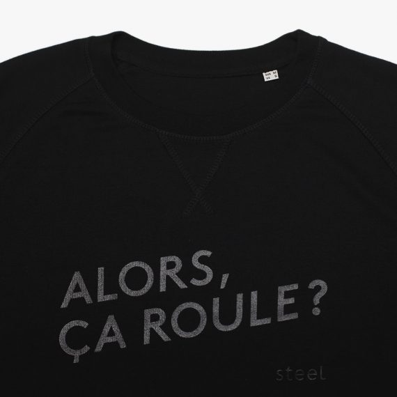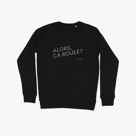 Le Steel Cyclewear sweat Alors ça roule noir est notre tout premier sweat du label Steel. Nous sommes très fiers de vous le présenter !