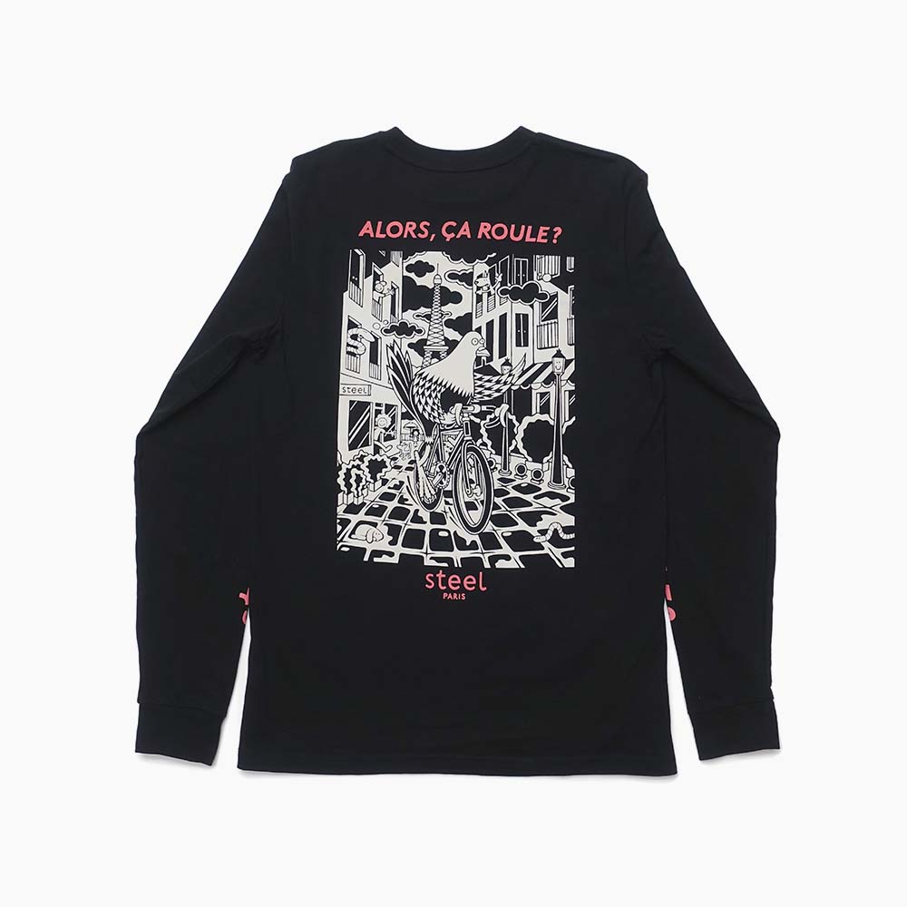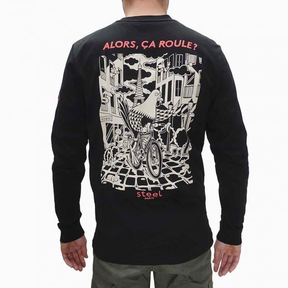 Le Steel Cyclewear T-Shirt Steel X Cento Long Sleeve Black est le nouveau T-Shirt Steel avec un design original de l’artiste Cento Anesio dans le dos représentant l’univers de la boutique.